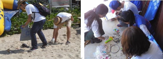 活动前,保护区管理处负责人为大家讲解了海洋垃圾的危害及本次活动的意义,同时强调了净滩时的注意事项。志愿者们待领取环保垃圾袋和手套等工具后,便开始分组行动,顶着炎炎烈日,不放过沙滩上每一个细微角落里的垃圾,“收获”的喜悦溢于言表。经过1个多小时的净滩行动,志愿者共清理了14公斤垃圾,并将垃圾分类填写了ICC卡片,后续将进行分类处理。随后,大家还参观了保护区管理处的珊瑚展览馆。