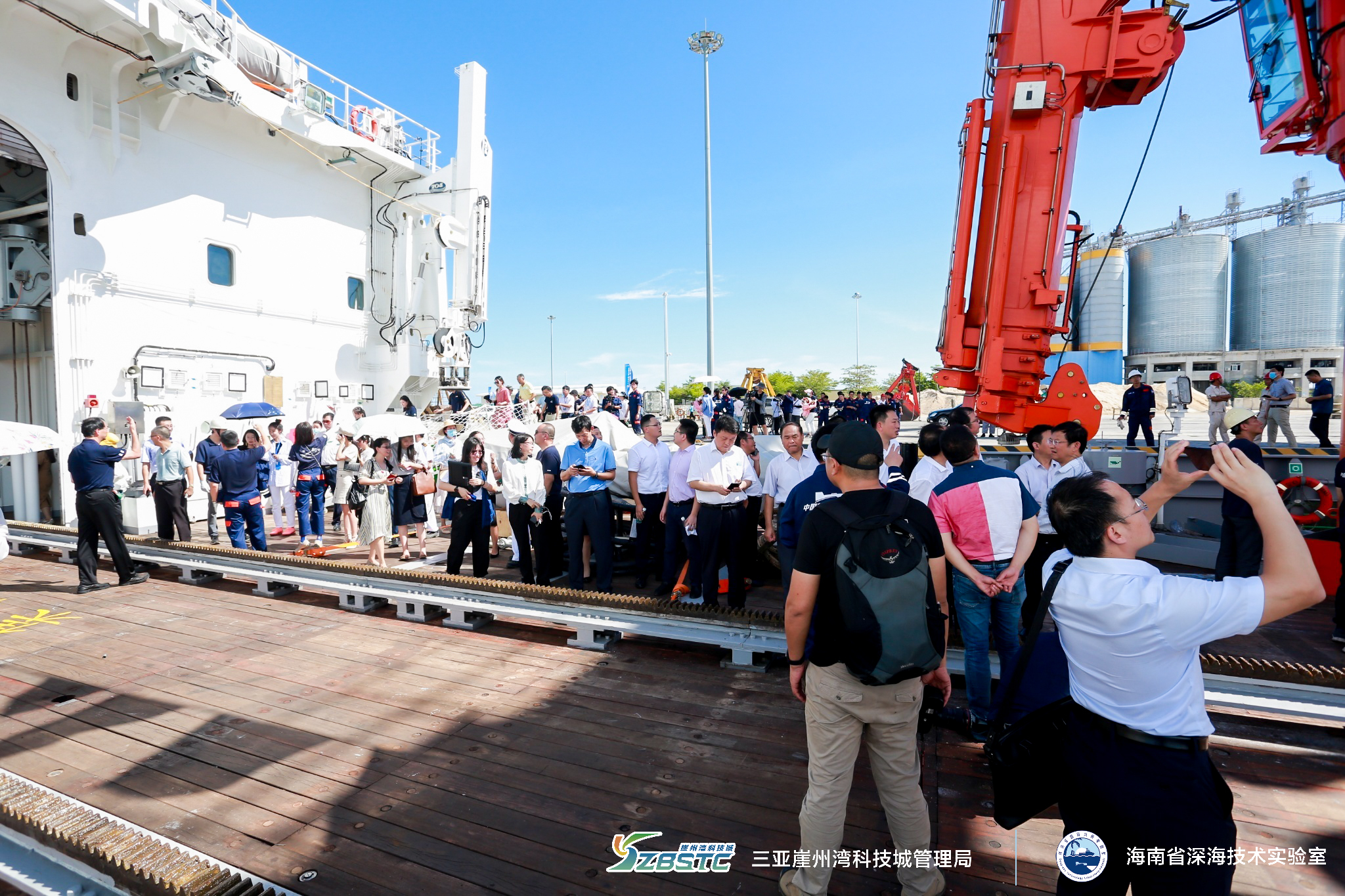 6月25日, “探索二号”船从福建马尾造船厂码头启航,经过830海里的航程, 28日下午,顺利抵达三亚崖州湾科技城南山港码头。来自海南省人民政府、海南省科学技术厅、深圳市规划和自然资源局、中国船舶集团702研究所、704研究所、武汉理工大学、中科院沈阳自动化所、中科院声学研究所、三亚崖州湾科技城管理局等相关单位代表共200余人参加接船仪式。