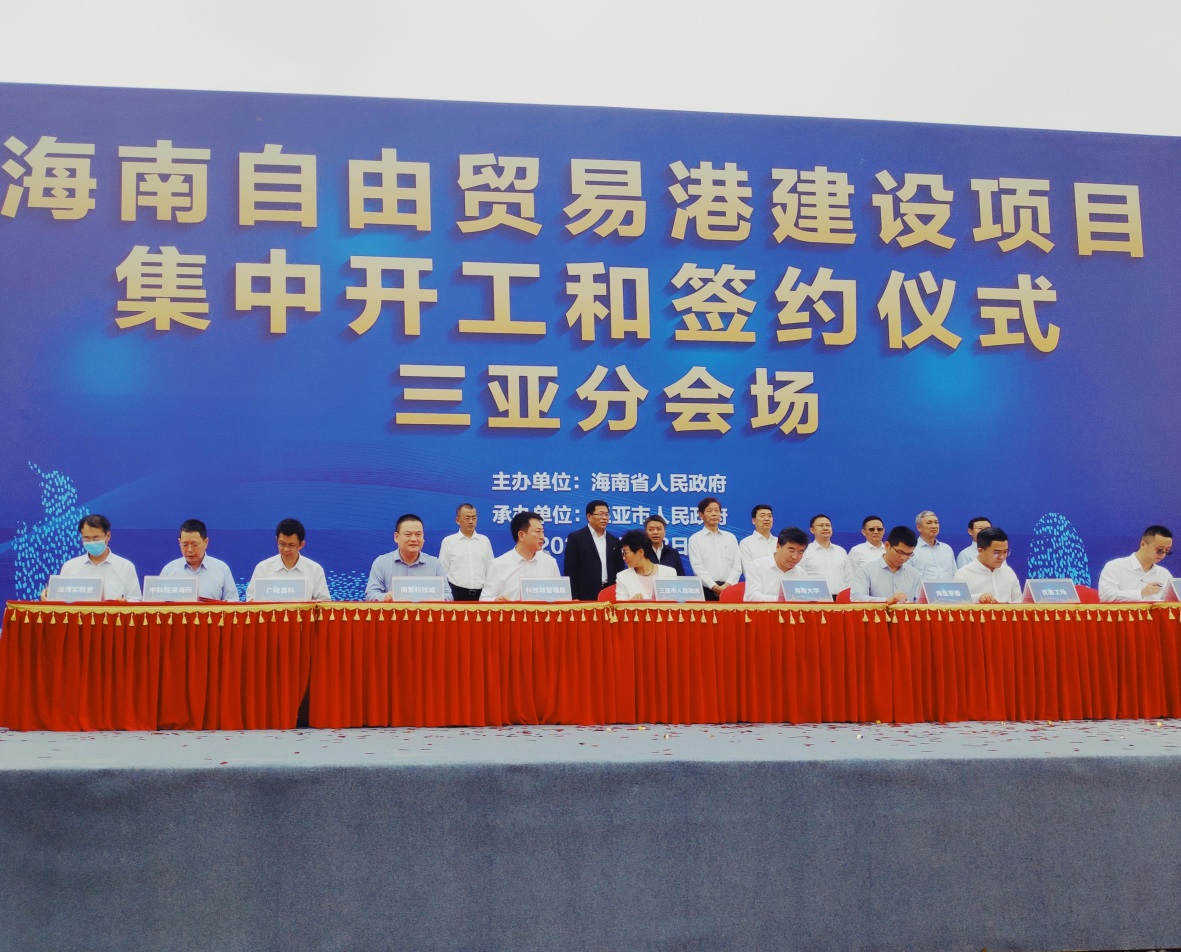 4月13日上午,海南自由贸易港建设项目集中开工和签约仪式三亚分会场活动在崖州湾科技城举行。深海所所长丁抗、副所长阳宁分别代表海南省深海技术实验室、深海所,与三亚崖州湾科技城签署《三亚崖州湾科技城管理局海南省深海技术实验室 中国科学院深海科学与工程研究所合作框架协议》(以下简称《协议》),副所长彭晓彤出席活动。
