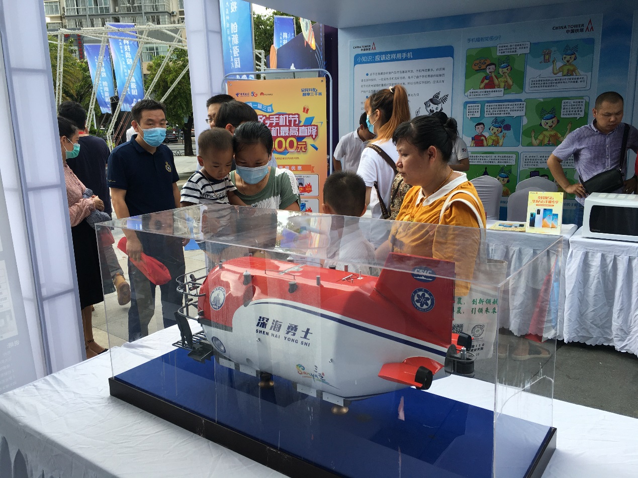 本届科技活动月主题为“科技抗疫 创新强国”,以科技战疫为重点,展示科学技术对战胜疫情的重要支撑作用和系列成果,同时还展示科技创新对国家经济社会发展的重要支撑作用;深海所受邀作为科技创新成果单位展出“深海勇士”号载人潜水器模型以及展板介绍,受到市民关注。
