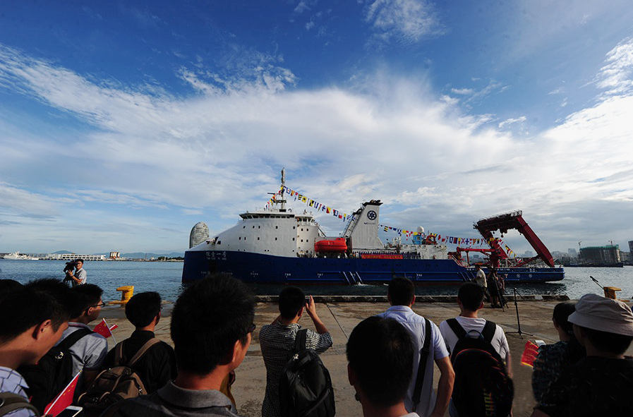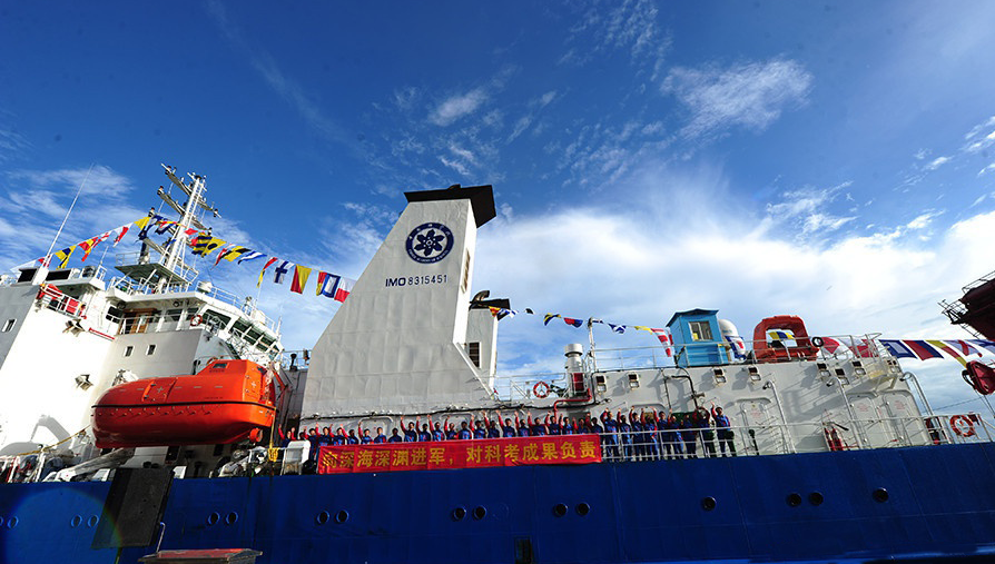 中国4500米载人潜水器及万米深潜作业工作母船“探索一号”科考船首航取得圆满成功