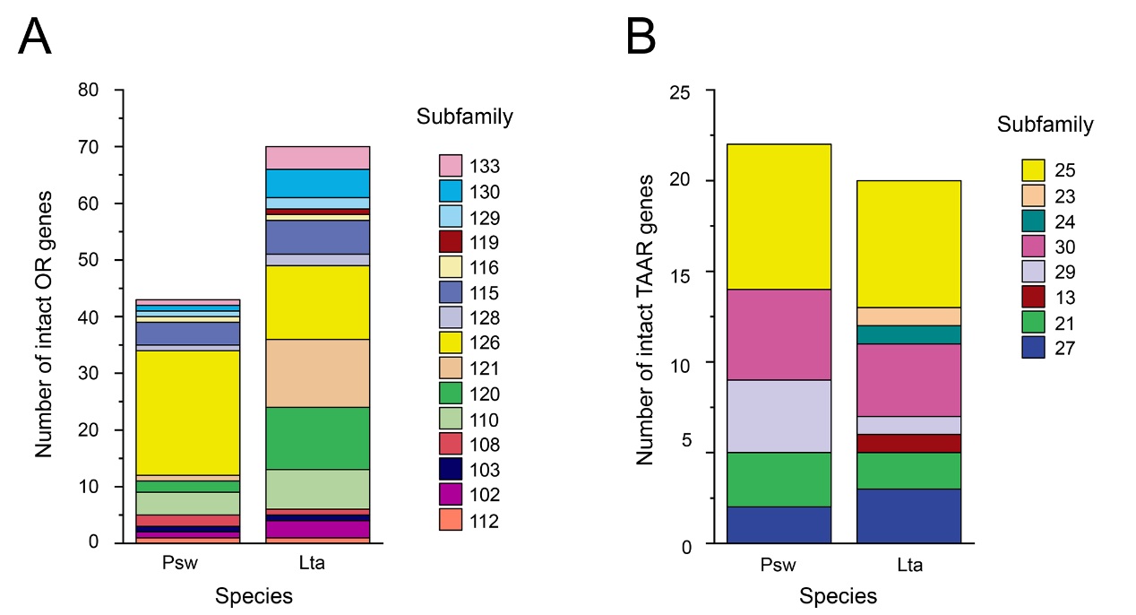深海狮子鱼和潜海狮子鱼嗅觉受体基因和痕量氨受体基因数量比较