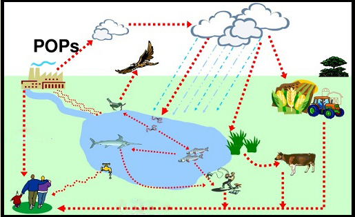 持久性污染物高持久性和半挥发性的特点使得它们能在比较温暖的地区从土壤或水体中以蒸汽形式进入大气或者吸附在大气中颗粒物上进行大气远程迁移,并在一定条件下沉降到地表,导致世界各地的持久性有机污染物的存在,即使在像南北极圈以及“世界第三极” 青藏高原以及海拔较高的高山地区这样比较寒冷且远离污染源的偏远洁净地区的土壤、水体、生物体内也能发现持久性有机污染物的存在,此外最新的研究表明世界海洋最深处的马里亚纳海沟表层沉积物中也具有非常高浓度的持久性有机污染物。此外它们低水溶性和高脂溶性的特点,导致了它们在生物体的脂肪组织中的生物积累效应。在全球范围内,持久性有机污染物在土壤、沉积物、鱼类脂肪、陆生动物和人类母乳中都有发现。由于食物链的放大效应,在南、北极地区的海豹、北极熊和因纽特人母乳内多氯联苯类浓度为水体中浓度的千万倍以上。