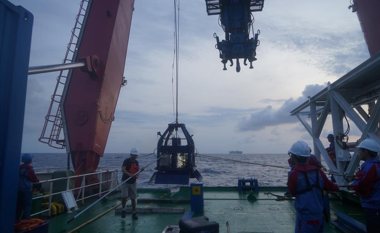 2019年8月26日,结束为期18天的TS13-1航次任务,“探索一号”胜利返航。深海工程地质原位测试装置参加了本次海试,在100m、1000m、3000m等水深的多个深度区域成功布放5次,对各深度下的多个点位分别开展了数次静力触探试验和剪切阻力试验,获取了10个点位的静力触探贯入试验数据(包括锥尖阻力、侧壁摩擦力和孔隙水压力)和4个点位的剪切阻力数据,最大试验水深3013m,最大贯入深度达到10.4m。值得一提的是,深海工程地质原位测试装置高度最大约13.5m,这次海试的成功对“探索一号”船上其他大尺寸海洋装备的海上试验有着重要的借鉴意义。