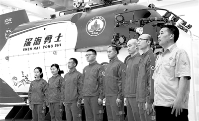 中科院深海所“深海勇士”号载人潜水器设计师胡震和深潜团队。 李英挺摄