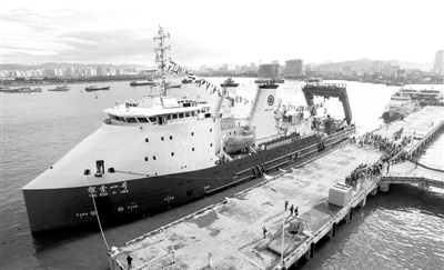 2016年8月12日,“探索一号”科考船首航太平洋马里亚纳海沟顺利归来,停靠三亚码头。(资料图片)